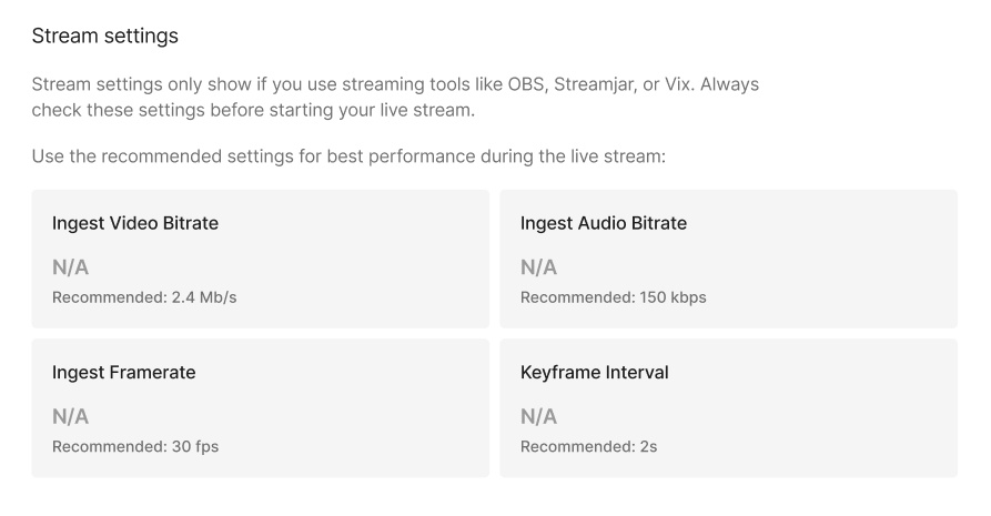 - Output = IngestAudioBitrate: 150 kbps
