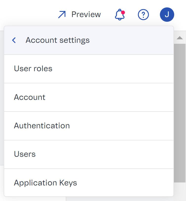 1. Go to the Account page by clicking your profile avatar that has the first letter of your email address, and then go to Account Settings > Account.