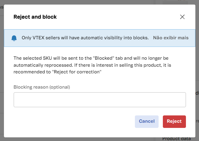 Reject and blockbutton. - Complete the Block reason field. This field is optional.