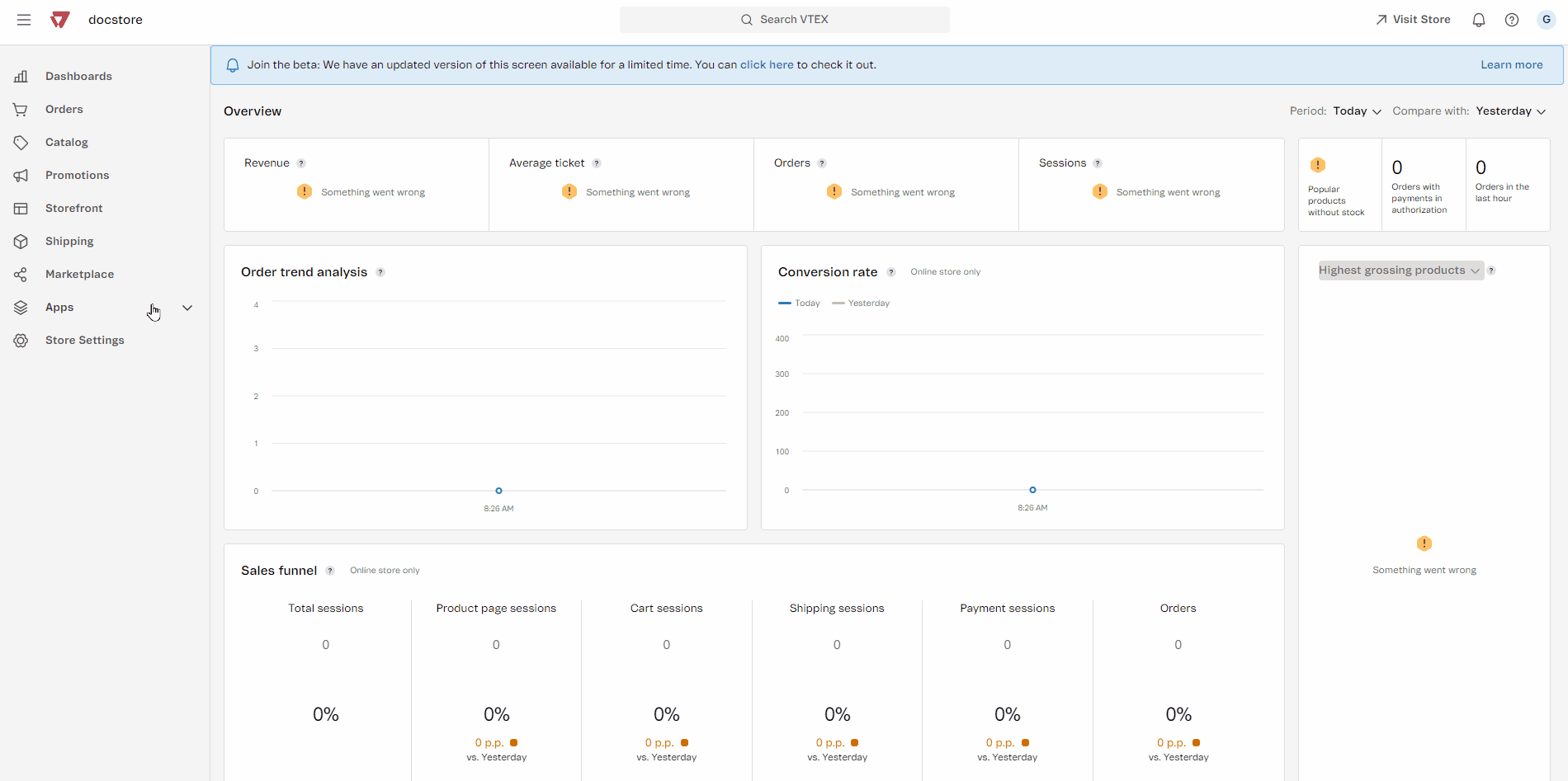 In the VTEX Admin, go to Apps > B2B Organizations and Cost Centers > Organizations, or type Organizations in the search bar at the top of the page.