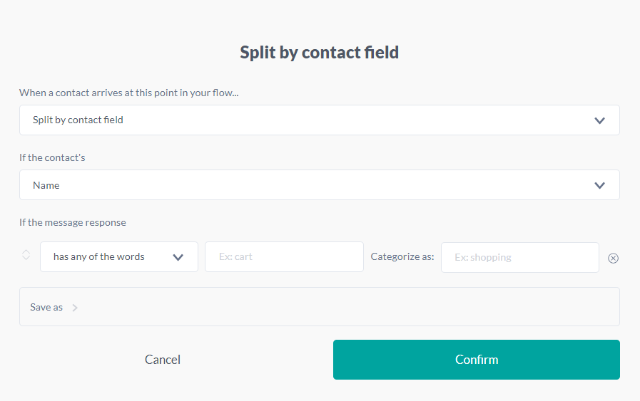 Here, all decision rules analyze a contact field. Just select which contact field you want to check, and define the rules in question.