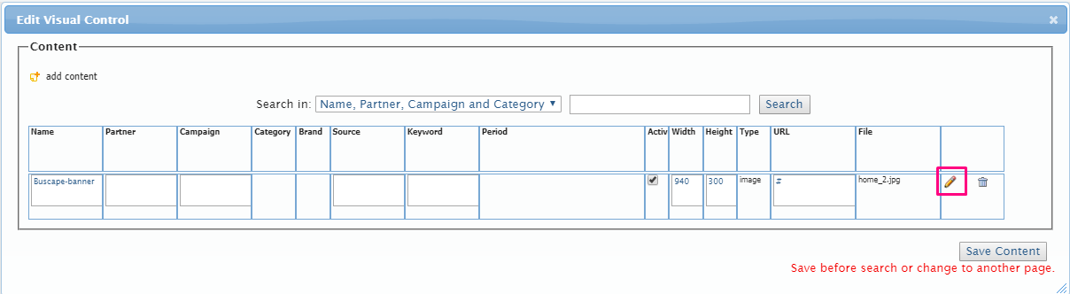If it is necessary to update the created content after saving it, just click on the second pencil symbol as shown below: