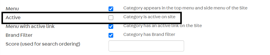 6. Uncheck the box that says Active | Category is active on site, as illustrated in the image below: