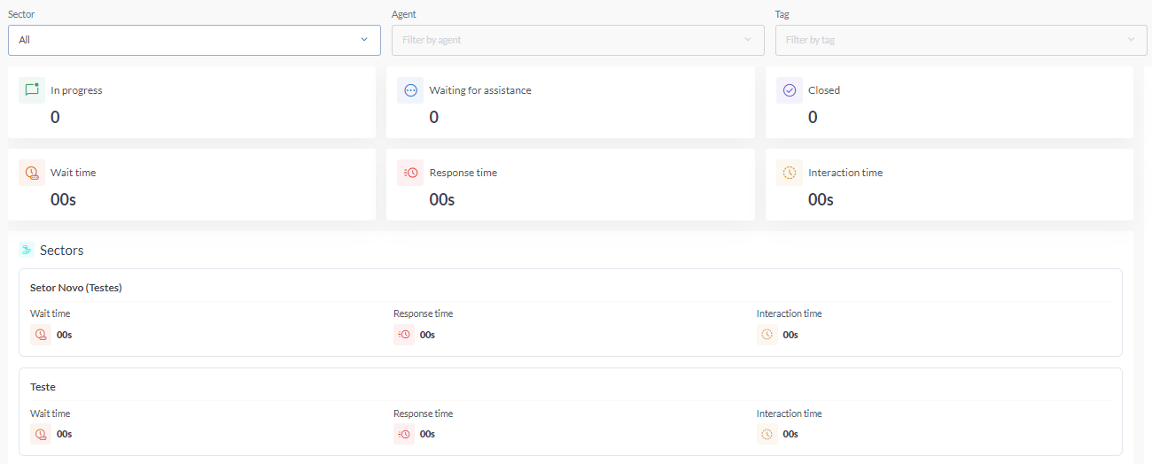 The Dashboard is a tool that displays data related to human support, providing important metrics aimed at monitoring the quality and efficiency of interactions. This tool assists managers in improving decision-making and allows agents to view their individual metrics.