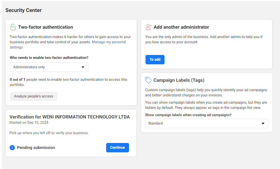 Follow Meta’s instructions carefully, read the requirements thoroughly, and enter the information that matches your company documentation/tax ID (CNPJ) or as requested by Meta.