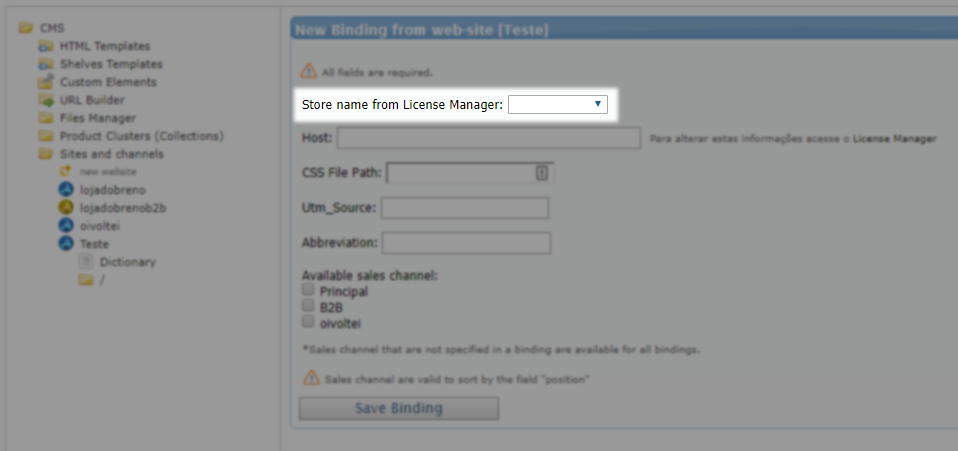 One of the first things you have to do in your web site is to link it to a store. This process is called binding, and it is very simple. All you have to do is follow the steps below: