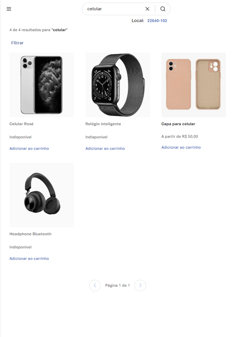 La búsqueda de VTEX Sales App es unificada, lo que significa que al realizar una búsqueda los resultados se obtienen tanto del stock local (de la tienda física) como de otras tiendas físicas y centros de distribución asociados a la tienda de ecommerce.