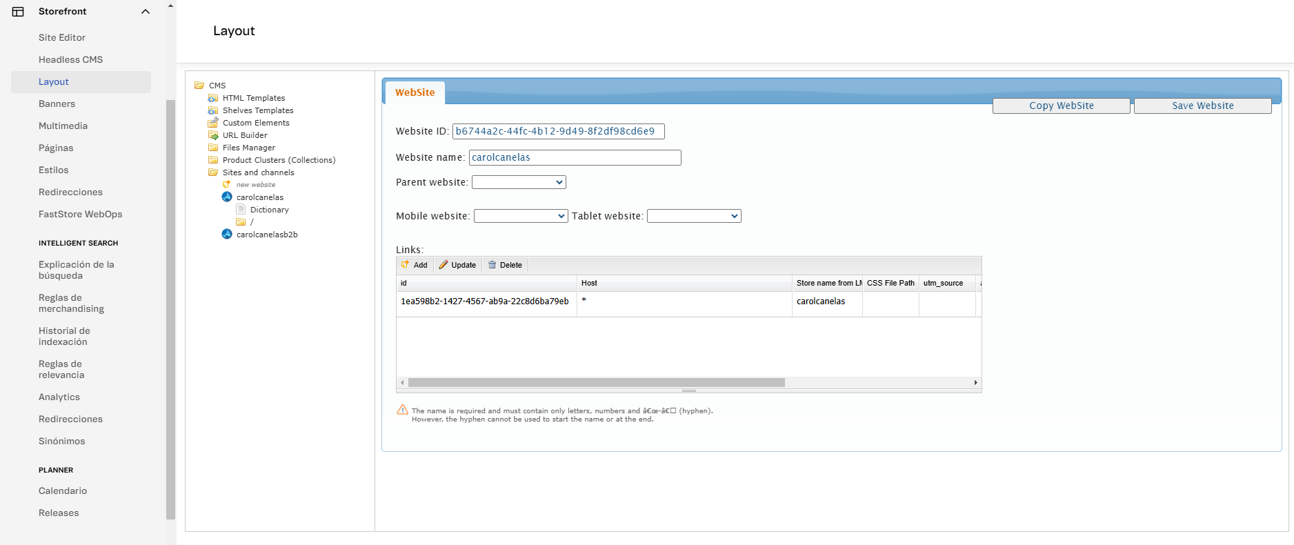 A excepción de la carpeta Sites and channels, todas las demás funcionalidades de la sección Layout del Admin VTEX solo están disponibles para tiendas CMS Portal Legado.