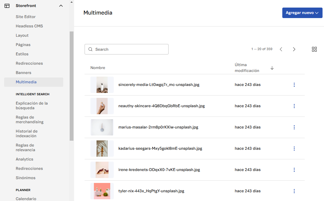 En el módulo Multimedia puedes gestionar los archivos multimedia de tu tienda, como imágenes y videos.