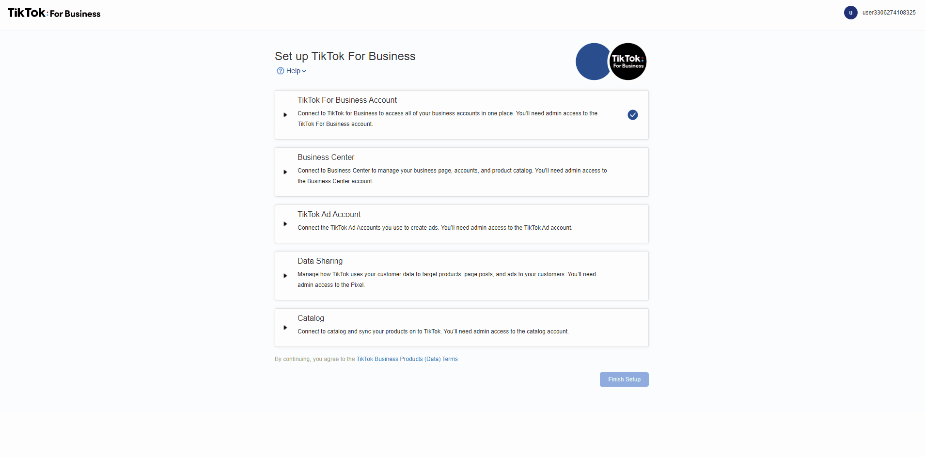 1. Haz clic en la sección TikTok for Business Account y verifica que tu cuenta esté en la lista.