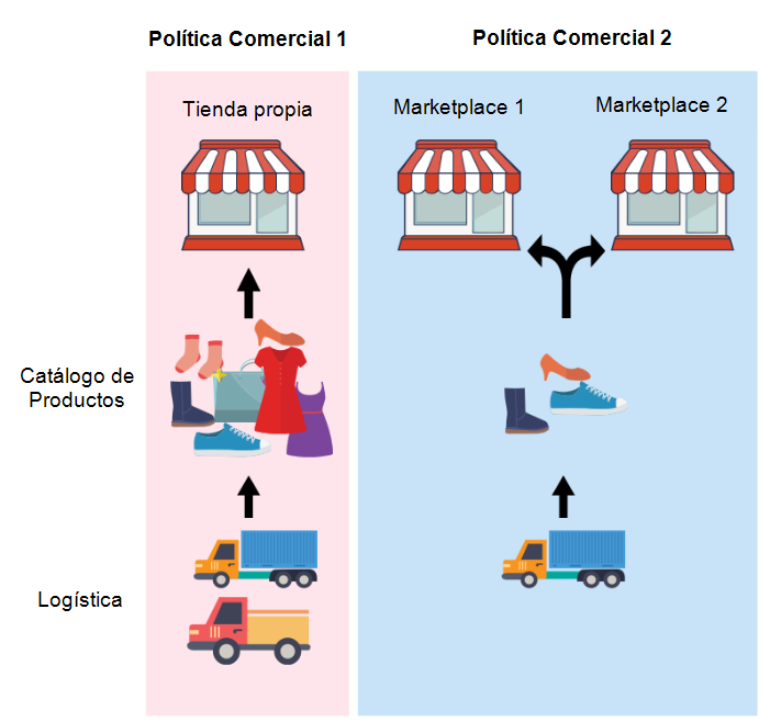Una de las funciones de la política comercial es hacer una diferenciación de catálogo y/o logística entre los diferentes canales de venta de la tienda. Es decir, una nueva política comercial solo es necesaria cuando uno de estos factores es diferente entre los canales de venta.