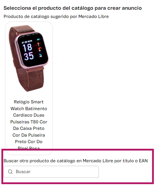 - Sugerencia de catálogo: producto del catálogo sugerido por Mercado Libre.
