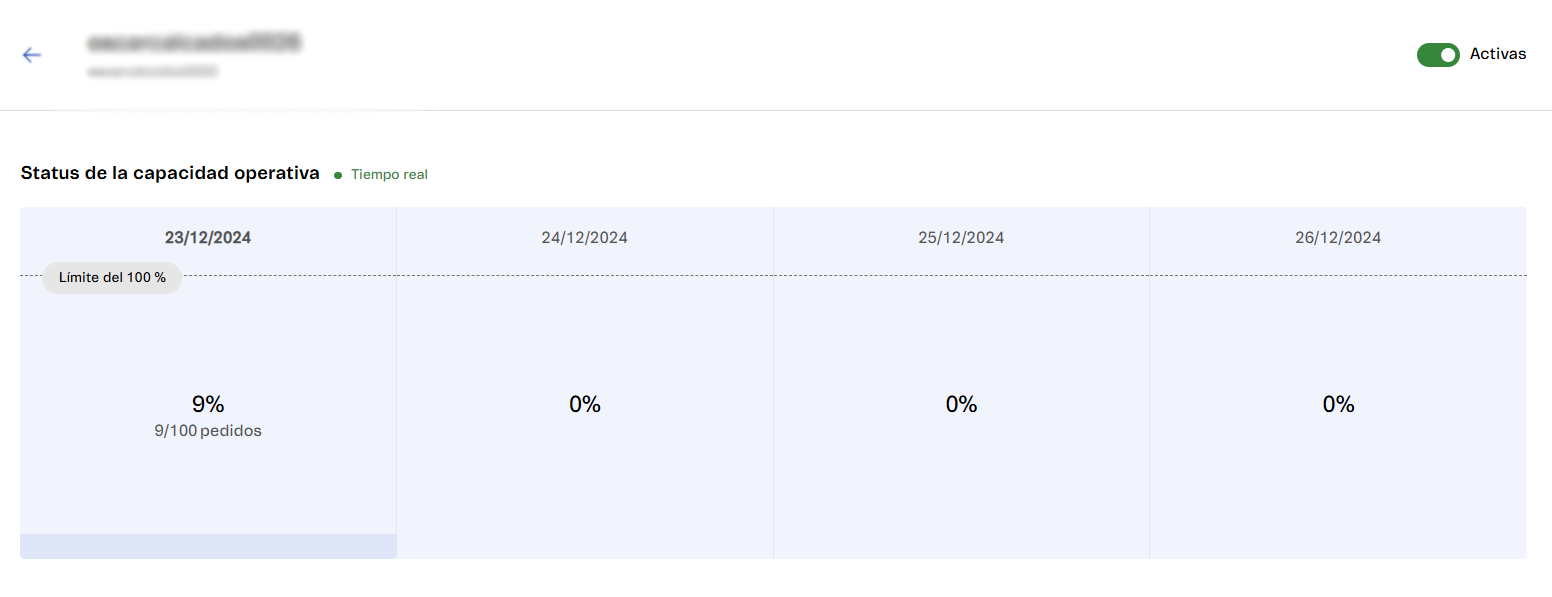 Antes de activar el módulo, te recomendamos que configures la capacidad operativa de tus sellers. De este modo, antes de que la funcionalidad surta efecto, contarás con una vista previa de cómo se consume la capacidad de cada seller, lo que te permitirá ajustar la configuración según las necesidades de tu operación.