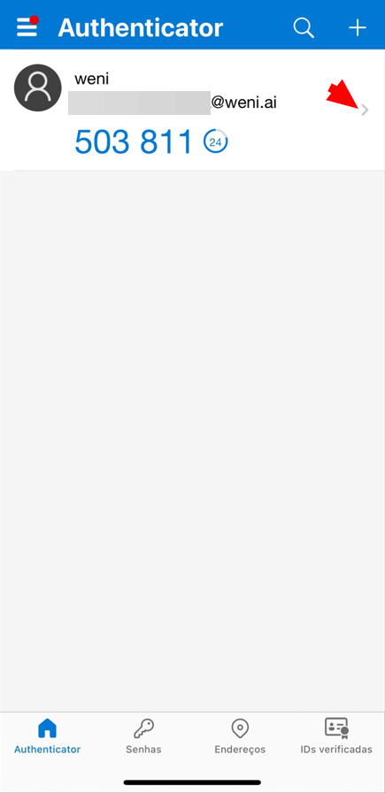 - Acceda a la aplicación Microsoft Authenticator en su celular.