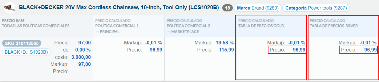 A diferencia de las políticas comerciales, que también se pueden utilizar para segmentar precios, no hay límites para creacion de tablas de precio. La única limitación que existe es un máximo de 100 precios fijos para el mismo SKU.