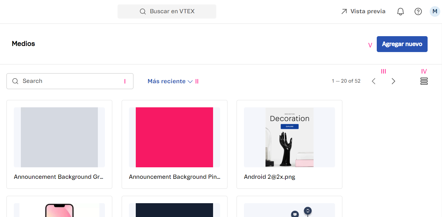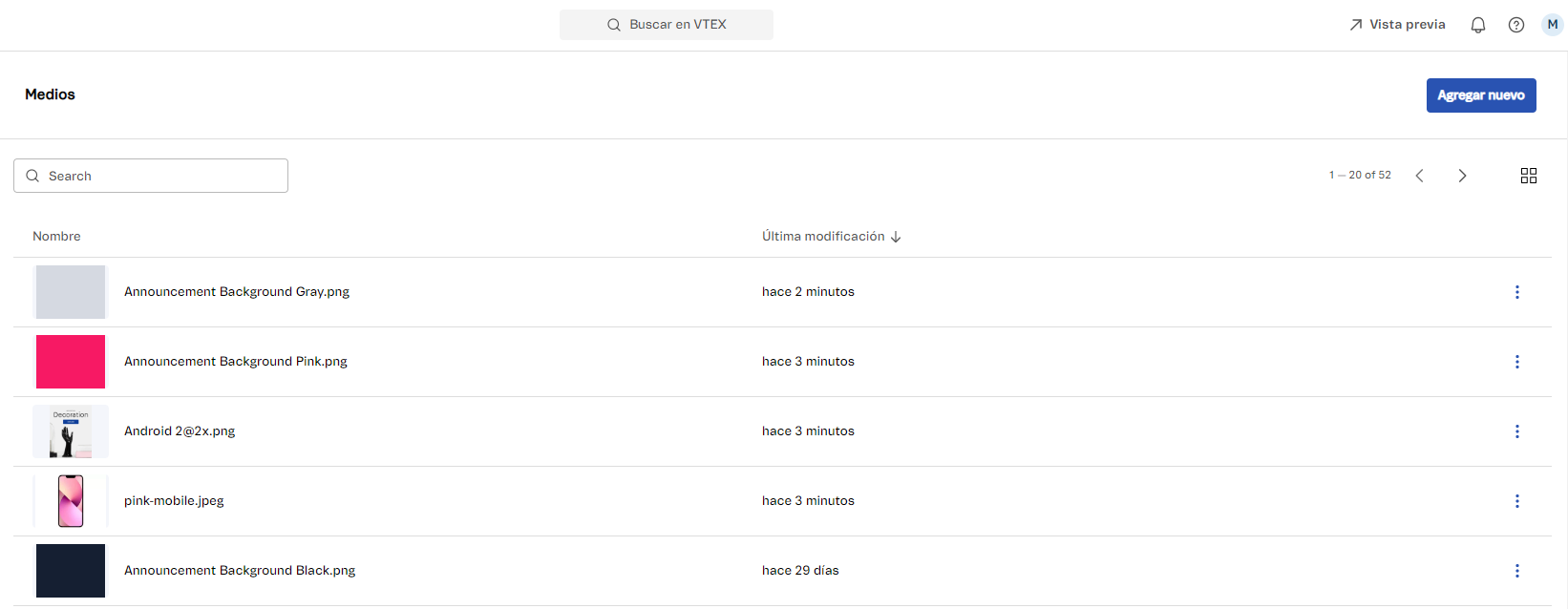 Multimedia: en el Admin VTEX, haz clic en Storefront > Multimedia.