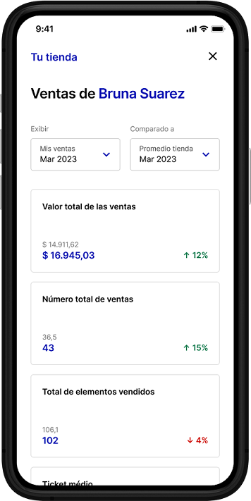 Desempeño de ventas es una página de VTEX Sales App que permite que administradores de las tiendas y vendedores accedan a las métricas de ventas, mostrando la comparación de desempeño entre periodos de ventas y desempeño de los empleados.