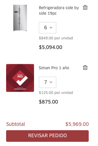 Observa que el carrito contiene una unidad más del ítem secundario en comparación con el ítem principal.