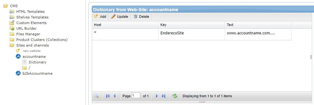 5. Adicionar o actualizar una clave con el nombre EnderecoSite.
