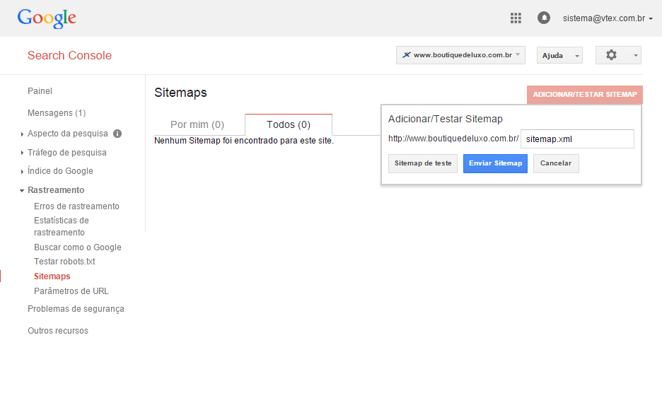 Despues de la “Verificación de la propiedad” de su tienda en Google Webmaster Tools, usted ya contara con el permiso para registrar el Sitemap de su tienda.