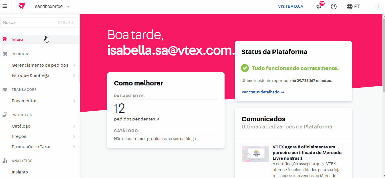 - No seu Admin VTEX, no módulo MARKETPLACE, clique em