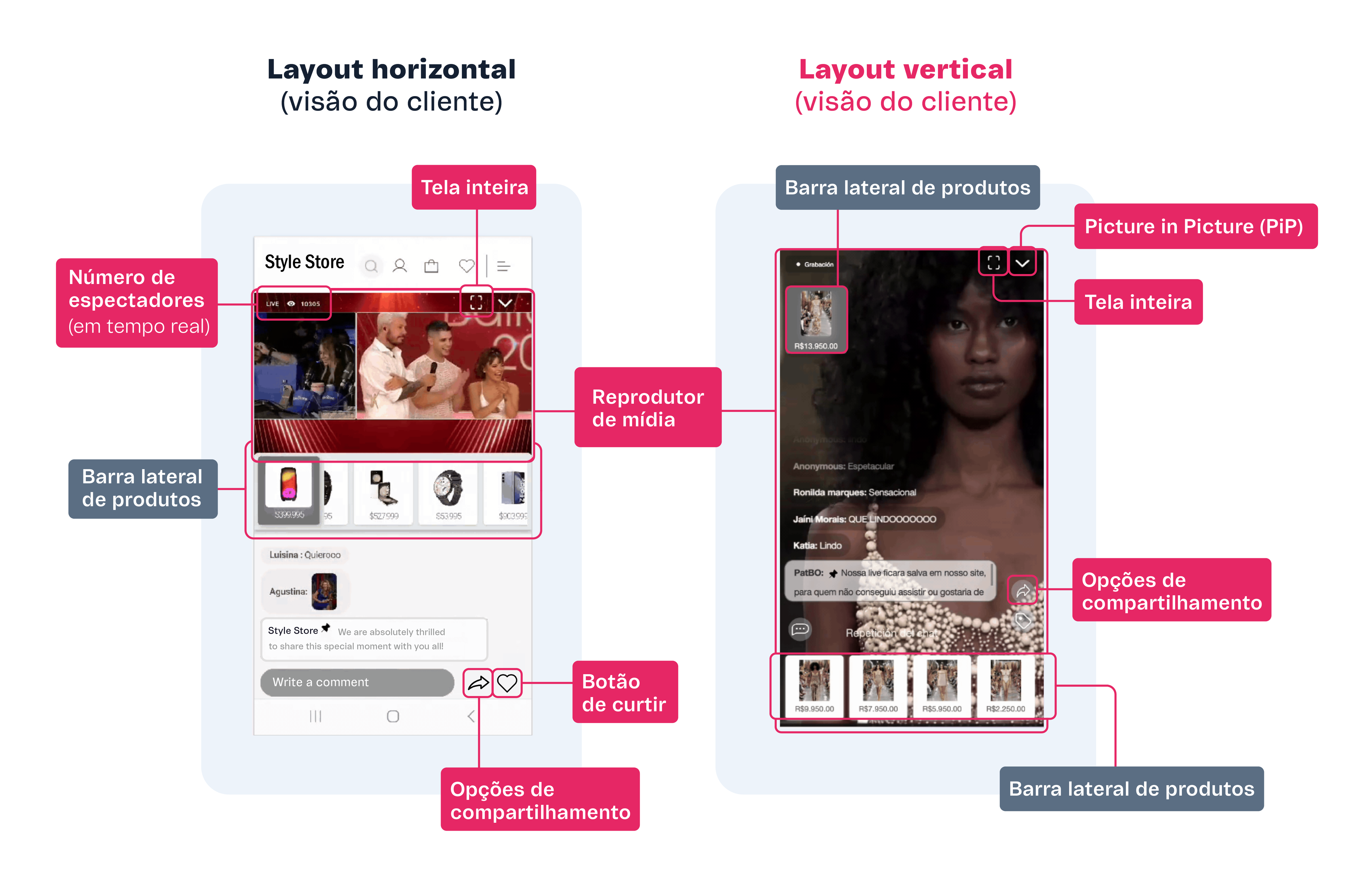 Veja abaixo como os recursos apareceriam em um evento real de Live Shopping:
