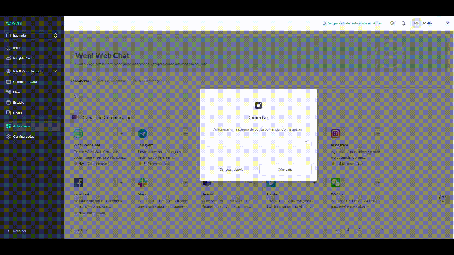 E agora você pode elevar o nível e o potencial do seu atendimento criando um canal que integra o seu Instagram à Weni Plataforma.