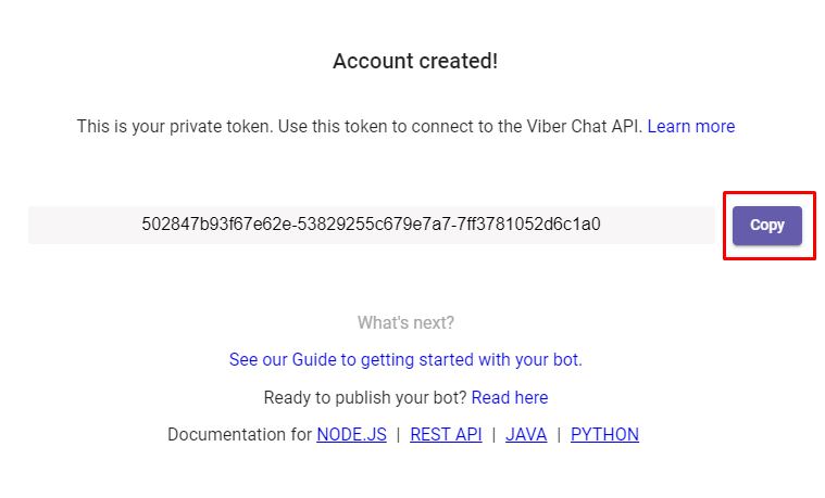 O único requisito é o Token de autorização (chamado token de aplicativo pela equipe do Viber)