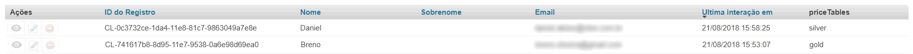 Por exemplo, estes dois clientes estão atrelados a tabelas de preços diferentes: