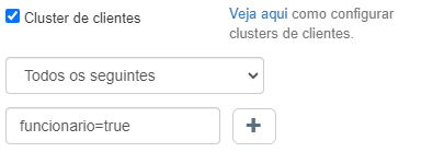 6. Preencha o campo com o cluster que deseja relacionar à promoção — veja abaixo mais informações sobre como preencher este campo. Você pode adicionar mais de um cluster, clicando no botão +.