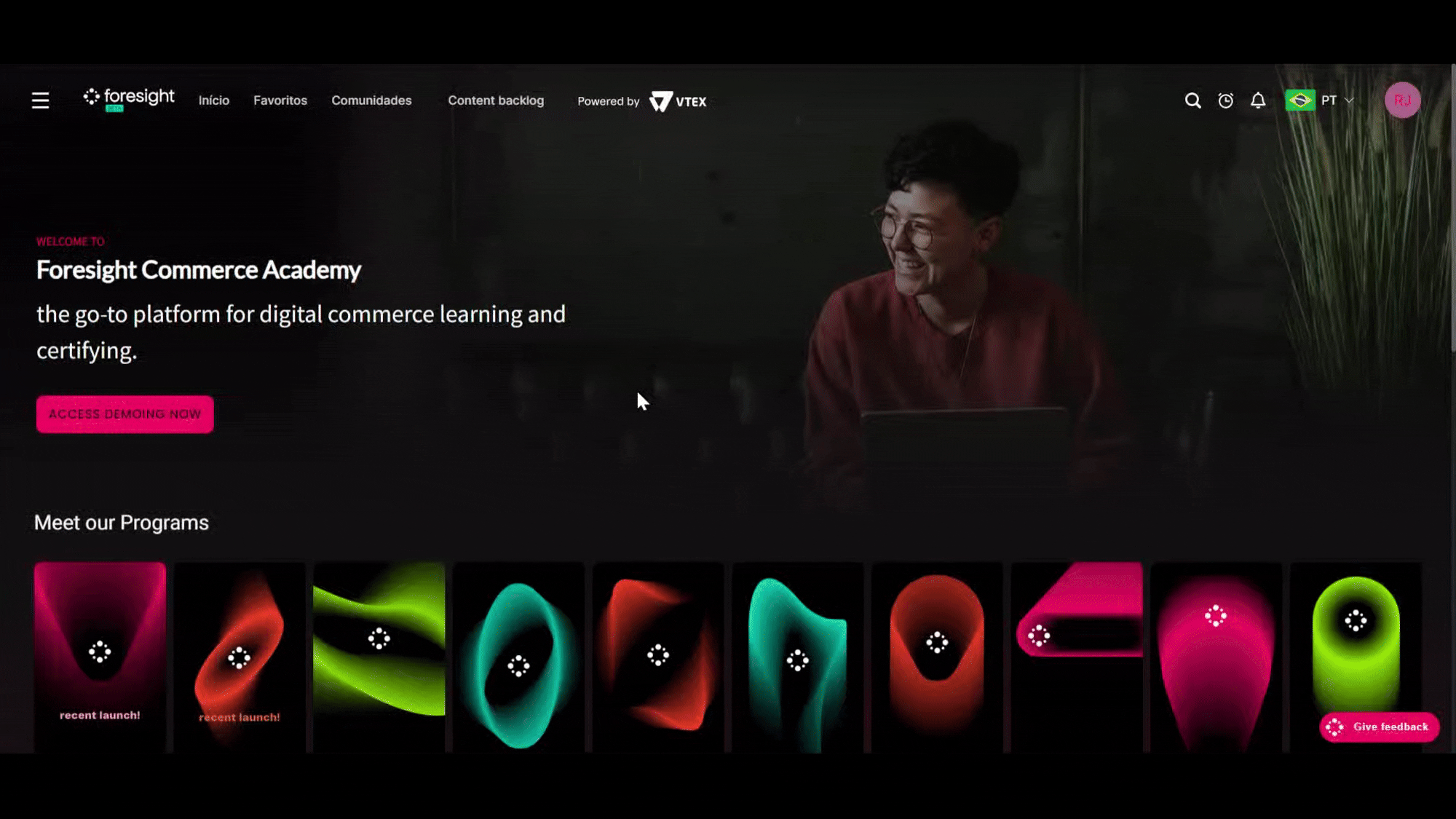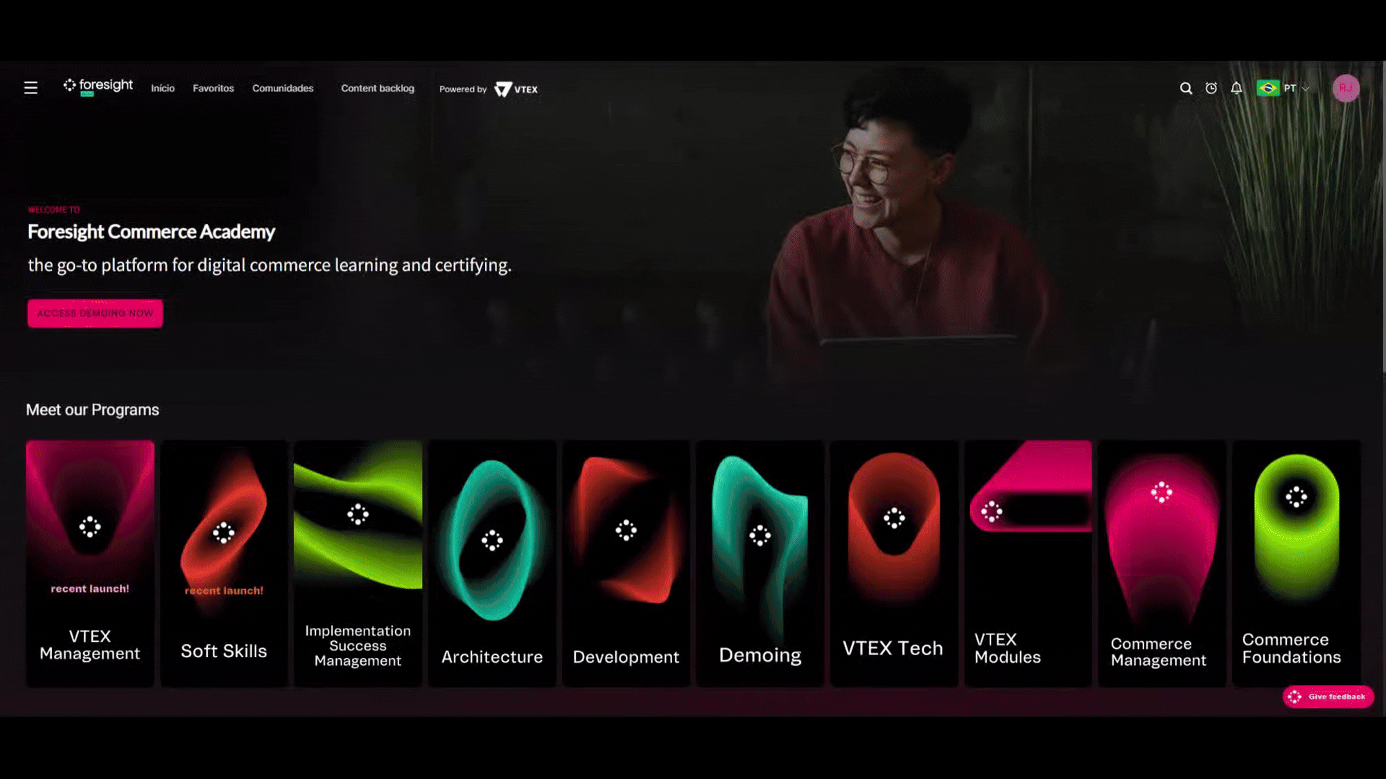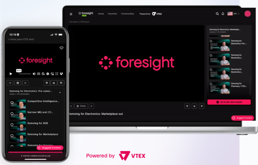 Com conteúdos relevantes e ensinados por experts em comércio digital e na tecnologia VTEX, o Foresight capacita profissionais para impulsionar suas carreiras e contribui para o fortalecimento dos parceiros, clientes e, em última instância, do ecossistema VTEX, preparando empresas e indivíduos para os desafios e oportunidades do mercado global.