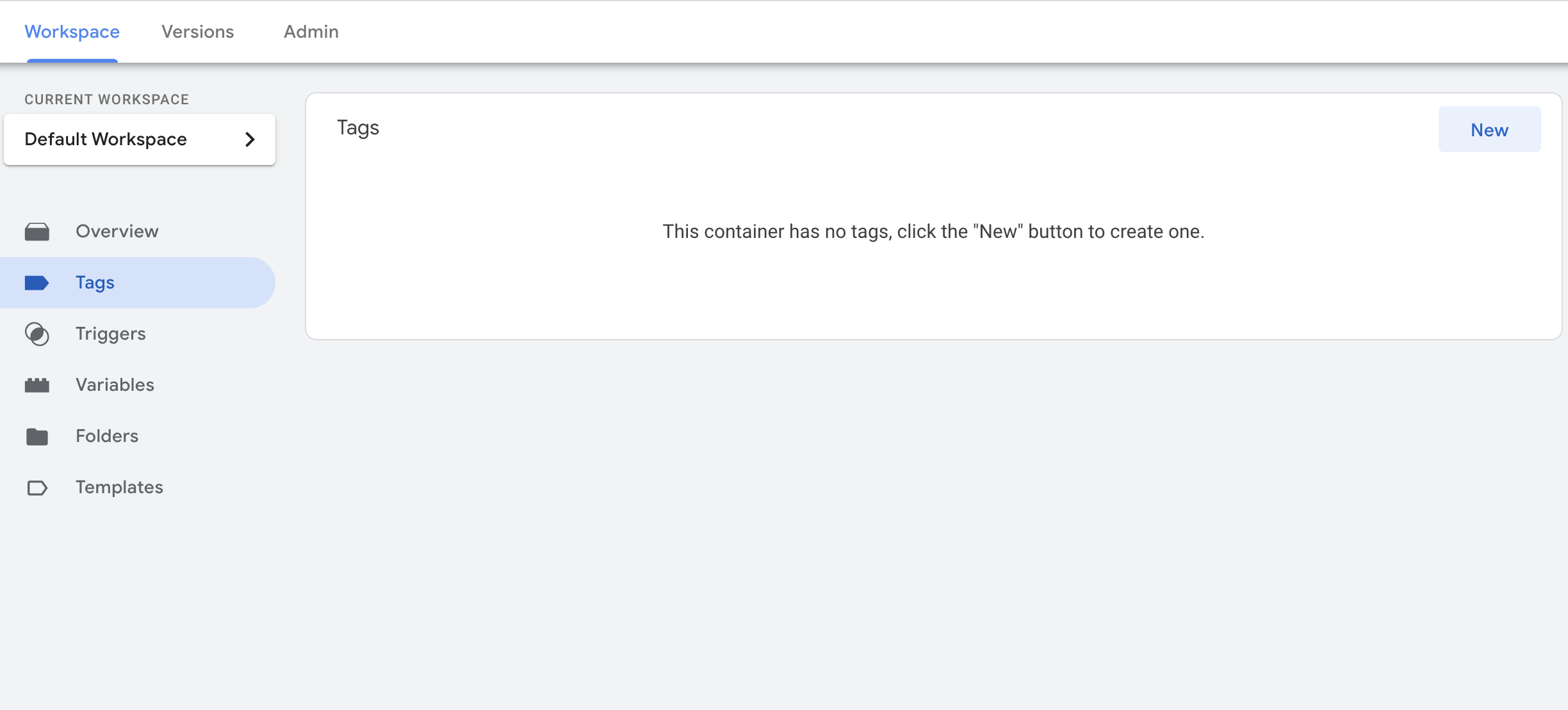 No GTM, clique no menu Tags e, após nisso, no botão New.