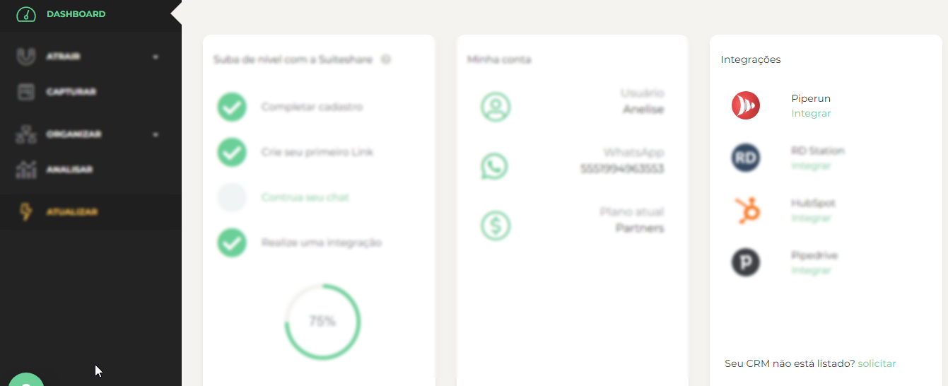 1. No dashboard, clique em Ver todas integrações e em Piperun.