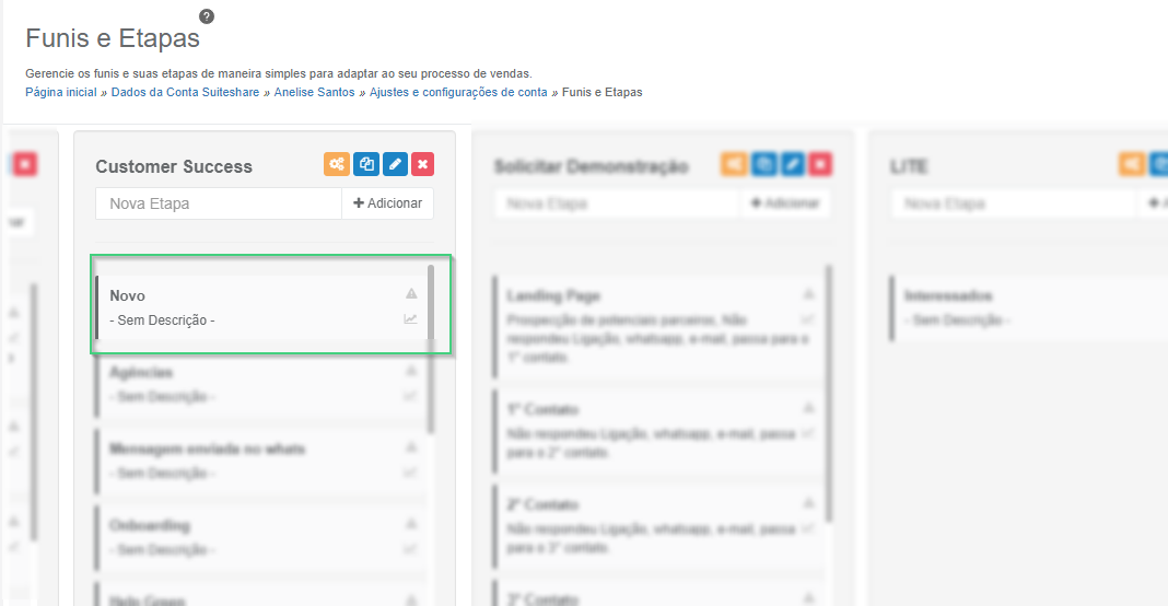 Selecione o funil e a etapa que deseja enviar esse cliente.