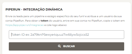 Agora você precisa da HasH ID fornecida pela Piperun.