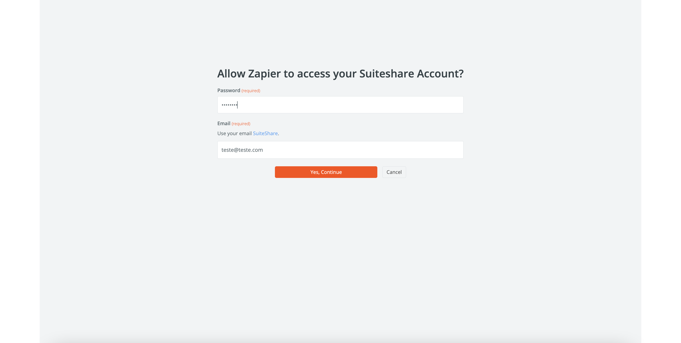 Forneça seu email VTEX Assisted Sales (SuiteShare) e sua senha para realizar a conexão.