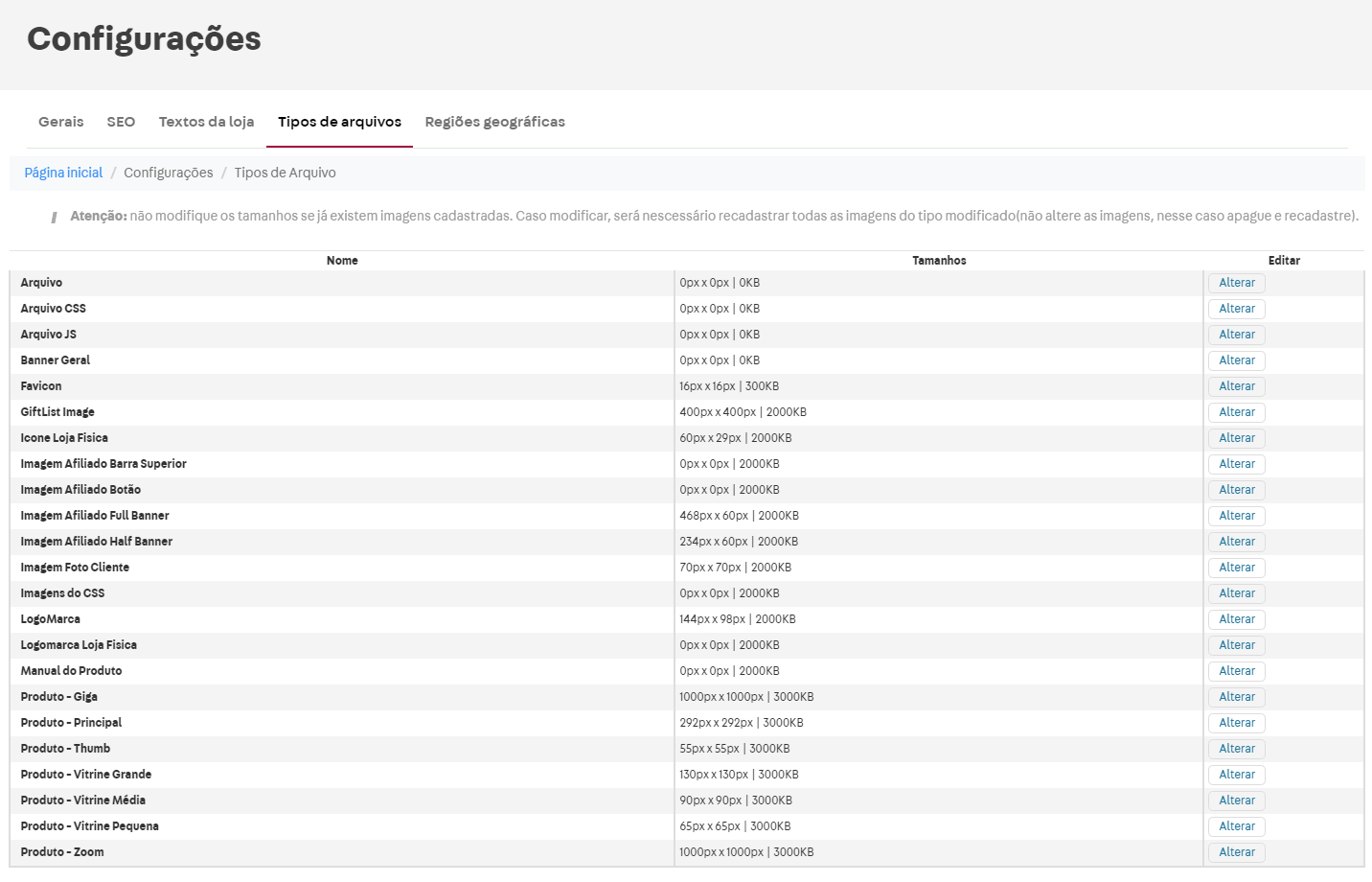 Agora digamos que eu não tenha nenhuma imagem com tamanho 1000x1000m nas somente com 800×800. Posso configurar o “Produto – Zoom” dentro de “Tipos de arquivos” para 800×800. Na minha página de produto, minha imagem aparece com 600×600, e ao passar o mouse sobre ela o zoom a ampliará para 800×800. Neste caso a ampliação será menor por causa da configuração do tamanho de “Produto – Zoom”.