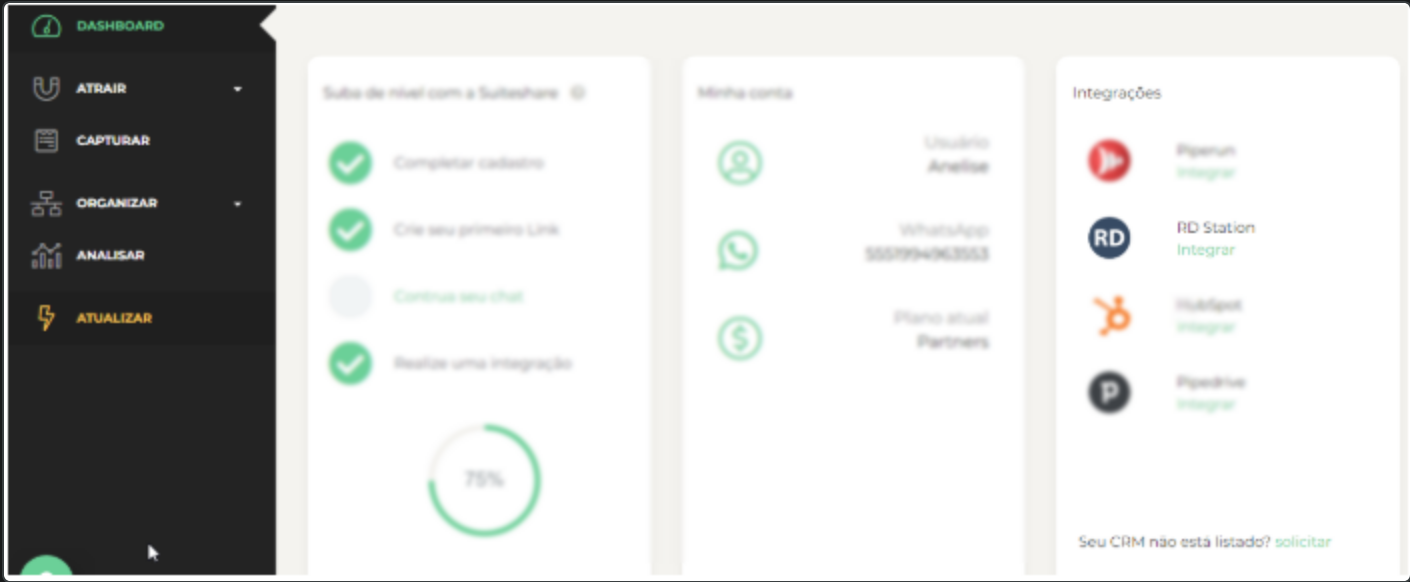 Para realizar a integração acesse no seu painel da Suiteshare as integrações, você pode acessar de duas formas.